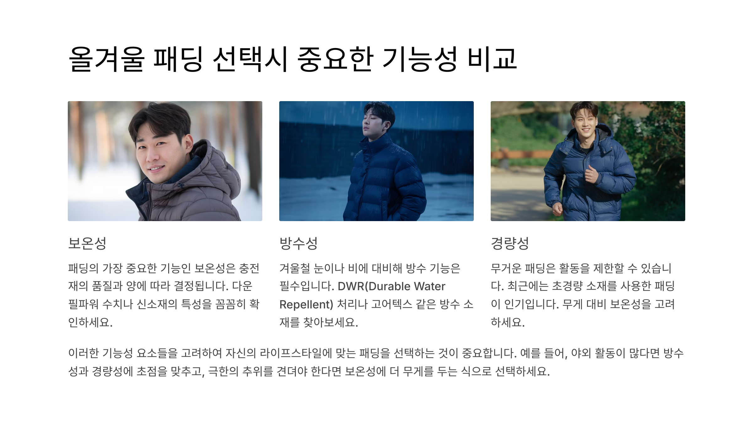 반면, 야외 활동이 많은 사람이라면 방수 및 방풍 기능이 우수한 패딩을 선택해야 합니다.
