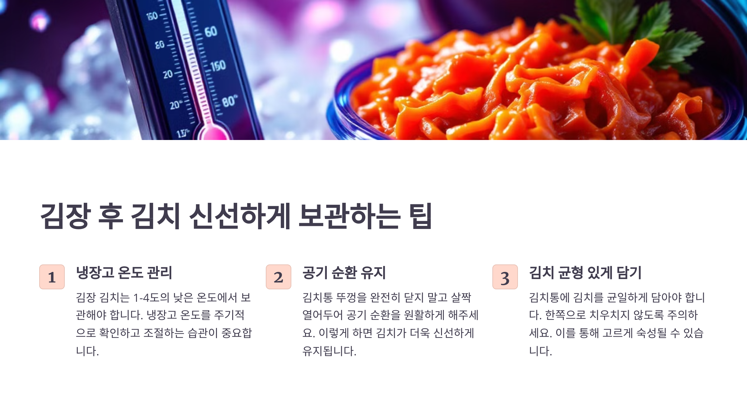 김장 김치는 1-4도의 낮은 온도에서 보관해야 합니다. 냉장고 온도를 주기적으로 확인하고 조절하는 습관이 중요합니다.