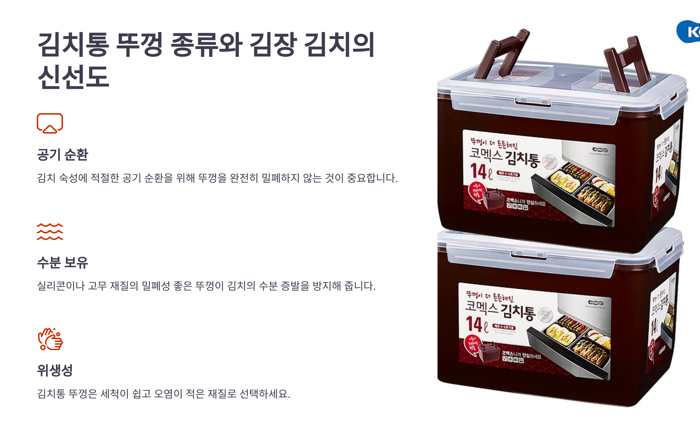 김치통 뚜껑 종류와 김장 김치의 신선도