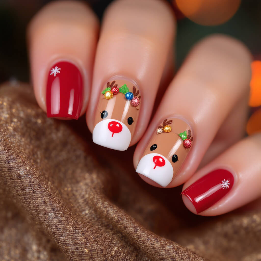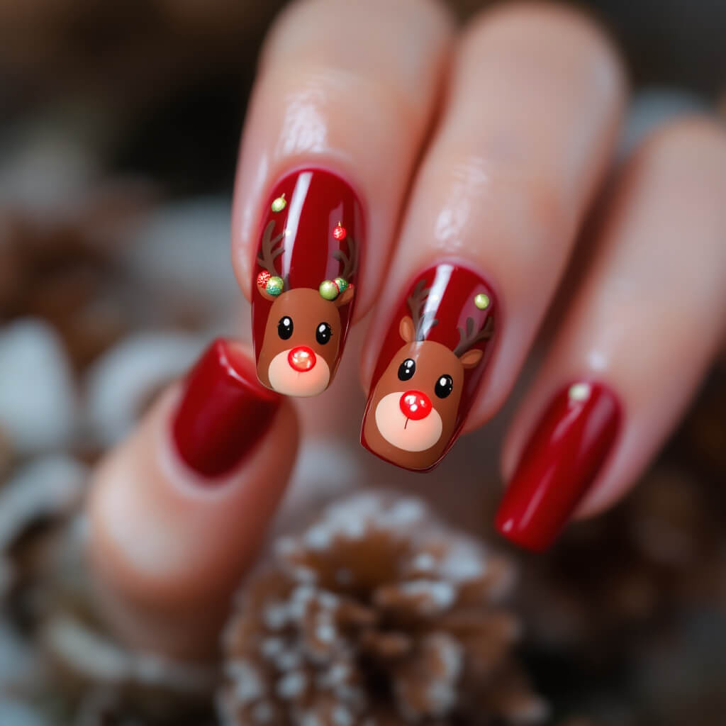 크리스마스의 대표 캐릭터 루돌프로 사랑스러운 네일아트를 완성해보세요. 간단한 도트 기법으로 만드는 귀여운 루돌프 디자인을 소개합니다.