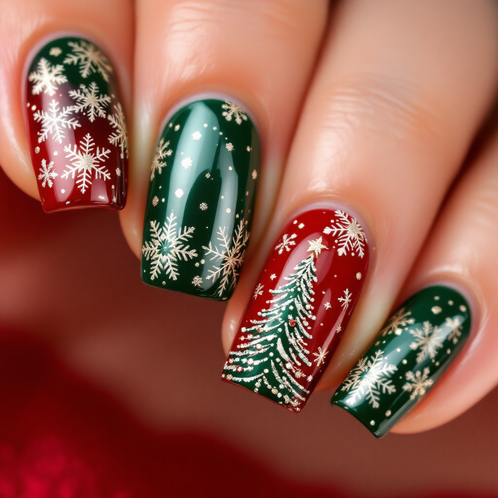 크리스마스 네일 #8 - 고급스러운 메탈릭 컬러로 연출하는 세련된 크리스마스 네일아트를 소개합니다. 파티나 특별한 모임에서도 돋보일 수 있는 럭셔리한 디자인으로 준비했어요.