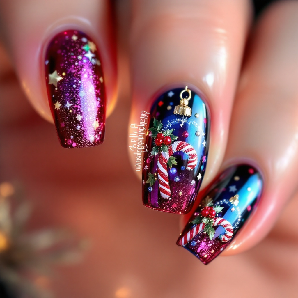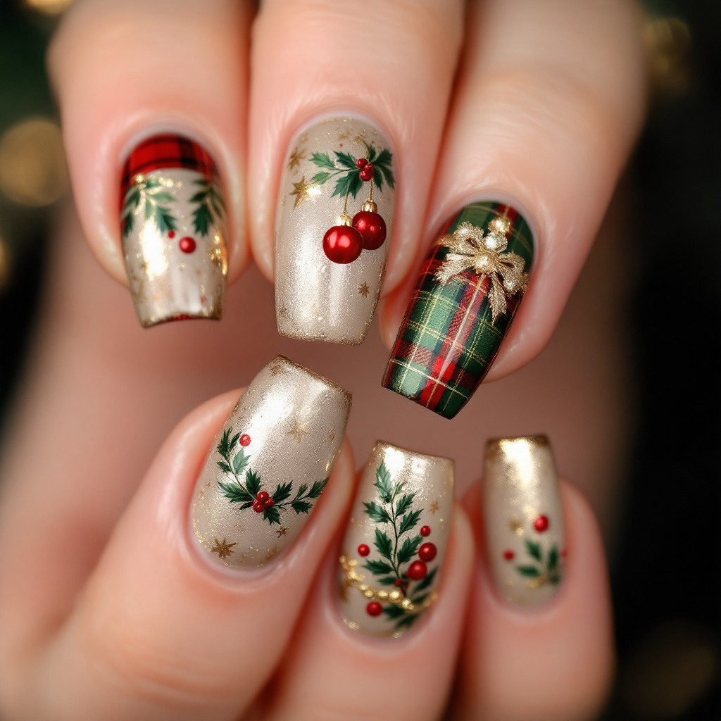 크리스마스 네일 #8 럭셔리 메탈릭 홀리데이 디자인