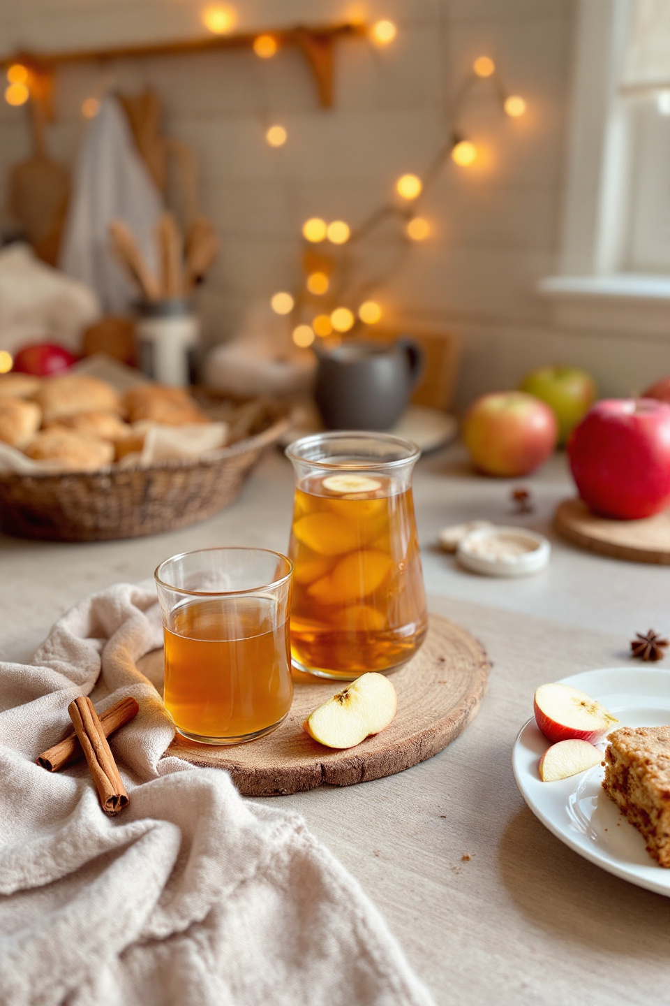 둘째, 사과 슬라이스나 시나몬 스틱을 음료 위에 추가해 장식하면 비주얼이 한층 업그레이드됩니다.